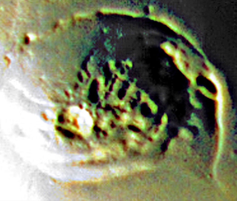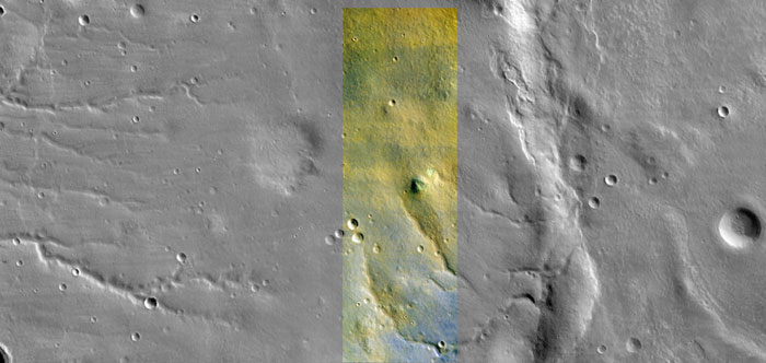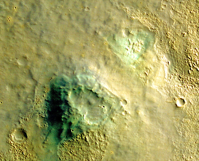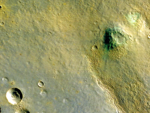 false color HIRISE image -- is revealing a "greenish cast" ...