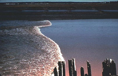 Figure 10 A typical terrestrial tidal bore wave making its way up a river basin