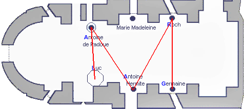Perhaps you have heard the French word for Grail ( GRAAL) is present in the church of Rennes. It can be read by selecting the first letter of certain statues’ name :