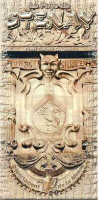 Thence to make of Stenay the town of the Satan, there’s but one step, quickly made by the lovers of originality. As early as 1885, the paper at the heading of the mairie bears this heraldic novelty and, when in 1925 the current Hôtel de Ville replaces the old common house of the Porte de Bourgogne, the architect means well carving on the fronton (but not in the great salon) the famous face of the devil.