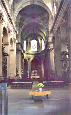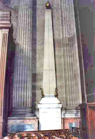"Le Gnomon" which represents the meridian of Paris in the cathedral. This meridian also goes through the St Vincent cathedral in Carcassonne. On the paintings "La resureccion de Jesus" (Jesus risen from the dead)