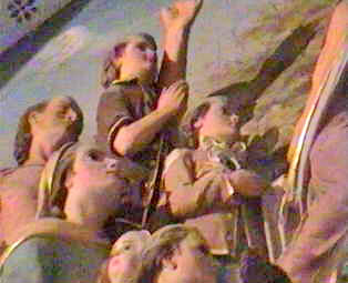 During a short trip to Paris I went to St Sulpice cathedral. Two years ago I started the page about the reversed Ns in which I presented two pictures I had been sent. On one of them, the painter Emile Signol had wrote the N in his name the wrong way, and on the other one, one could see that the N of INRI at the top of the cross was also reversed. There are the details of the paintings and some other strange thins I saw. The strange thing on this paintings is the little girl dressed in 18th century clothes. One can easily imagine a link between this and the bas relief in Rennes le Chateau where two boys are represented wearing 18th century clothes.