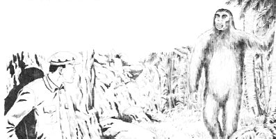 kitten. The head seemed to have no frontal lobes, but sloped back almost directly from the very heavy brows. The chin receded greatly and the teeth were large and prominent. Yet the skull capacity appeared similar to that of modern man with the exception of the missing forehead. The hands and feet were large and splayed. The legs were bowed and the arms were much longer than normal. I observed that the creature walked on the outer side of the feet as humans do. (Apes and others of that order do not walk on the outer surfaces.) As I looked and perhaps jumped with fright, or from some other cause, the yeti screeched, turned, and leaped away. It seemed to make "one-leg" jumps and the result was like giant strides. My own reaction was also to run, in the opposite direction! Later, thinking about it, I came to the conclusion that I must have broken the Tibetan sprint record for altitudes above seventeen thousand feet. Later we saw a few yetis in the distance. They hastened to hide at sight of us, and we certainly did not provoke them. The Lama Mingyar Dondup told us that these yetis were throwbacks of the human race who had taken a different path in evolution and who could only live in the most secluded places. Quite frequently we heard tales of yetis who had left the Highlands and had been seen leaping and bounding near inhabited regions.