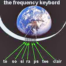 explanation to the picture: to=frequency of touch / so=" of sound/ si=" of sight/ ra=" of radiowaves / ps= " of psychometry tee=freq. of telepahy / clair= " of clairvoyance / notice that the freq. of radiowaves and sight are of almost identical range of frequencies. that is - one can almost SEE the radiowaves also without a radio helping to "translate" them.