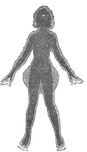MAIN LINES OF THE AURA Last on page 45 he tells that the thoughts of a person is visible - as on a screen - on the outer surface of the aura. He compares it to a television screen: …so eventually the human eye sees the whole picture on the television screen. As the picture at the transmitter varies, so does the picture that you see on the television screen vary. In much the same way thoughts go from our transmitter, that is, the brain, and reach that sheath covering the aura. Here the thoughts seem to impinge (ramme) and form pictures, which a clairvoyant can see. But we see not merely the pictures of present thoughts, we can also see what has been! It is easily possible for an Adept to look at a person and to actually see on the outer covering of the aura some of the things that the subject has done during the past two or three lives. It may sound fantastic to the uninitiated, but nevertheless it is perfectly correct. Matter cannot be destroyed. Everything that is - still exists. If you make a sound the vibration of that sound - the energy which it causes - goes on forever. If, for instance, you could go from this Earth quite instantly to a far, far planet - you would see, provided you had suitable instruments - pictures which happened thousands and thousands of years before. Light has a definite speed, and light does not fade, so that if you got sufficiently distant from the Earth (instantly) - you would be able to see the creation of the Earth! But this is taking us away from the subject under discussion. We want to make the point that the subconscious, not being controlled by the conscious, can project pictures of things beyond the present reach of the conscious. And so a person with good powers of clairvoyance can easily see what manner of person faces him. This is an advanced form of psychometry, it is what one might term "visual psychometry." We will deal with psychometry later. Everyone with any perception or sensitivity at all, can sense an aura, even when they do not actually see it. How many times have you been instantly attracted, or instantly repelled by a person when you have not even spoken to him? Unconscious perception of the aura explains one's likes and dislikes. All peoples used to be able to see the aura, but through abuses of various kinds, they lost the power. During the next few centuries people are going once again to be able to do telepathy, clairvoyance, etc. Let us go further into the matter of likes and dislikes: every aura is composed of many colours and many striations of colours. It is necessary that the colours and striations match each other before two people can be compatible. It is often the case that a husband and a wife will be very compatible (forenlige) in one or two directions, and completely incompatible in others. That is because the particular wave form of one aura only touches the wave form of the partner's aura at certain definite points and on those points there is complete agreement and complete compatibility. We say, for instance, that two people are poles apart, and that is definitely the case when they are incompatible. If you prefer, you can take it that people who are compatible have auric colours, which blend and harmonise - whereas those who are incompatible have colours, which clash and would be really painful to look upon. People come of certain types. They are of common frequencies. People of a "common" type go about in a body. You may get a whole herd of girls going about together, or a whole group of young men lounging on street corners or forming gangs. That is because all these people are of a common frequency or common types of aura, they depend upon each other, they have a magnetic attraction for each other, and the strongest person in the group will dominate the whole and influence them for good or for bad. Young people should be trained by discipline and by self - discipline to control their more elementary impulses, in order that the race as a whole may be improved. As already stated, a human is centred within the egg - shape covering - centred within the aura, and that is the normal position for most people, the average, healthy person. When a person has a mental illness, he or she is not properly centred. Many people have said, "I feel out of myself today." That may well be the case, a person may be projecting at an angle inside the ovoid. People who are of dual personality are completely different from the average, they may have half the aura of one colour, and half of a completely different colour pattern. They may - if their dual personality is marked - have an aura which is not just one - egg shaped, but has two eggs joined together at an angle to each other. Mental illness should not be treated so lightly. Shock treatment can be a very dangerous thing because it can drive the astral (we shall deal with this later) straight out of the body. But in the main shock treatment is designed (consciously or unconsciously!) to shock the two "eggs" into one. Often it just "burns out" neural patterns in the brain. We are born with certain potentialities, certain limits as to the colouring of our auras, the frequency of our vibrations and other things, and it is thus possible for a determined, well - intentioned person to alter his or her aura for the better. Sadly, it is much easier to alter it for the worse! Socrates, to take one example, knew that he would be a good murderer, but he was not going to give in to the blows of fate and so he took steps to alter his path through life. Instead of becoming a murderer, Socrates became the wisest man of his age. All of us can, if we want to, raise our thoughts to a higher level and so help our auras. A person with a brown muddy coloured red in the aura, which shows excessive sexuality, can Increase the rate of vibration of the red by sublimating the sexual desires and then he will become one with much constructive drive, one who makes his way through life. The aura vanishes soon af