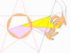 cone of vision through the hands dilates to a mere 11- hundredths of a