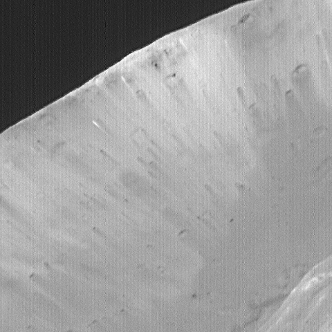 that of the Earth's, debris still tumbles downhill. Large boulders appear to be