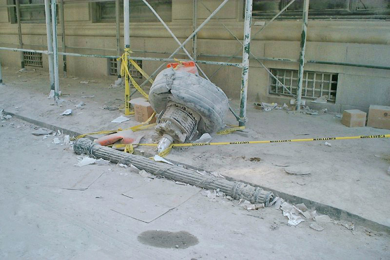 building's north side and fell from the sky.