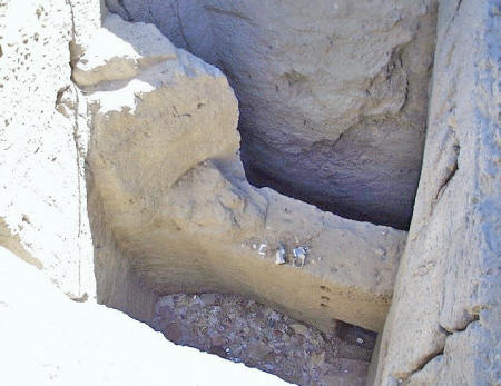 The evidence supporting the theory of dilute hydrochloric acid can be seen in the left photograph. The floor of the shaft obviously was eroded AFTER the pyramid was built.