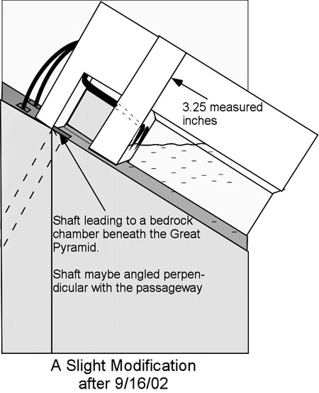 This time, I believe, they will find a shaft that is on the right side of the cavity. Perhaps in the floor, but possibly in the right wall. The reason I say this is because of the vertical shafts on the east side of the Great Pyramid. Vertical Shaft on the east side of the Great Pyramid