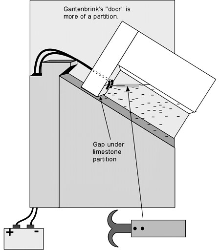 The lower parts of the shaft were eaten up by erosion. As Gantenbrink’s robot traveled through the shaft it was as though it