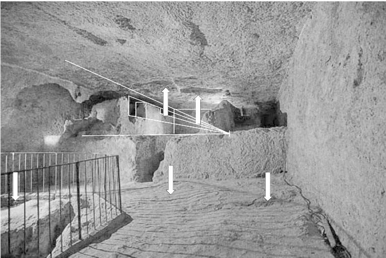A line from the subterranean chamber to the Queen’s chamber niche