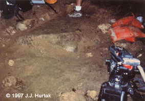 (Ground Penetrating Radar) kneeling in the area of the tomb of