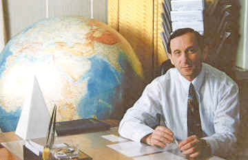 Sergey Shuvalov in front of the pyramid