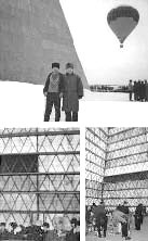 and G. Lozino-Lozinskiy during construction of the largest pyramid.