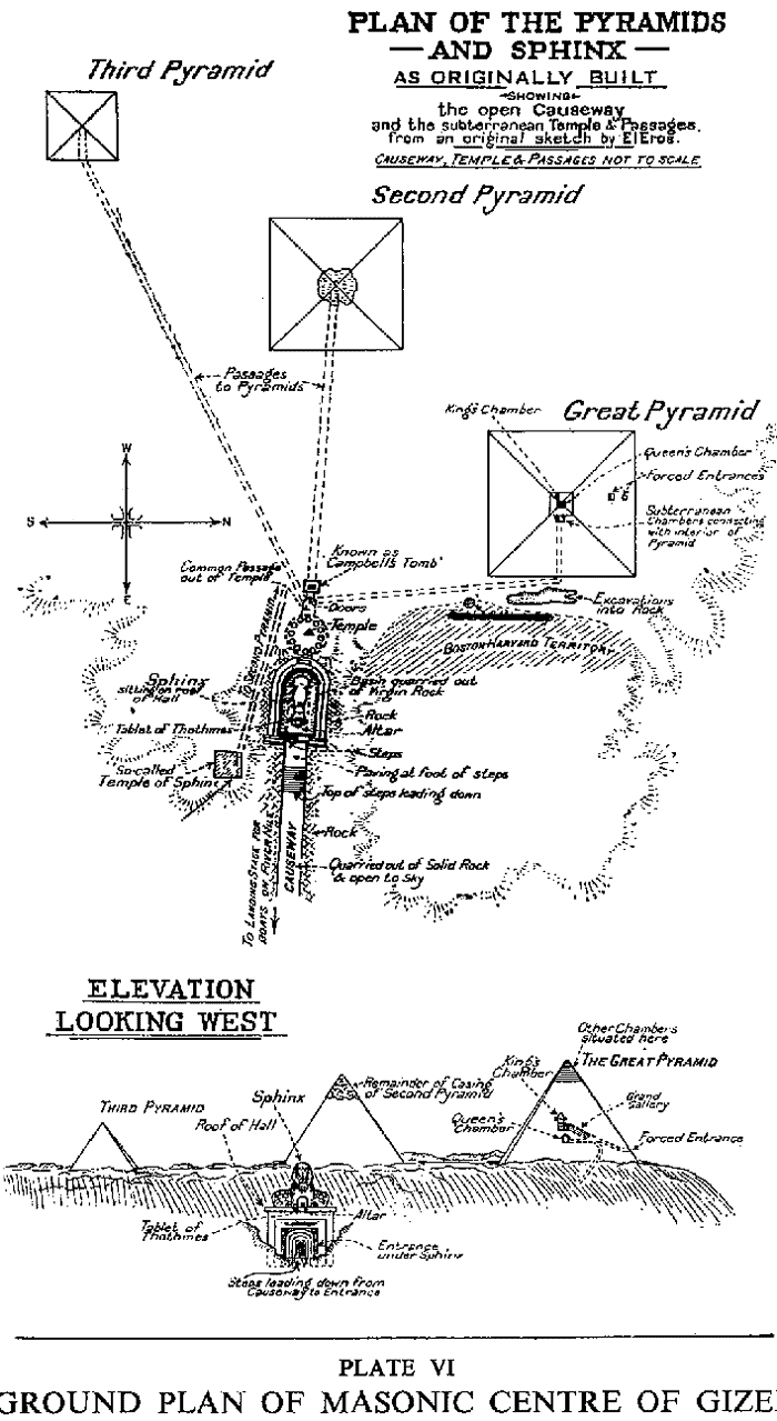 Sphinx and Pyramids as originally built" diagrams in the third