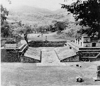 Figure 5. The ball court, Copán, expressing the symbolism of the seven Ahpú, the inventors of the game.