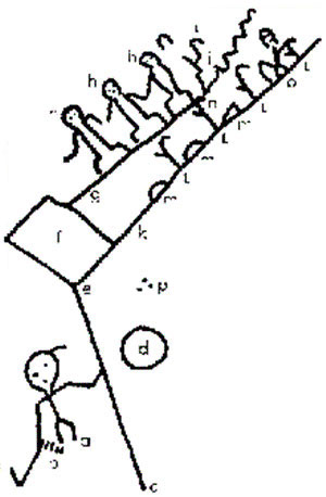 left hand, he is touching the path of Life Plan (c) which the Hopi