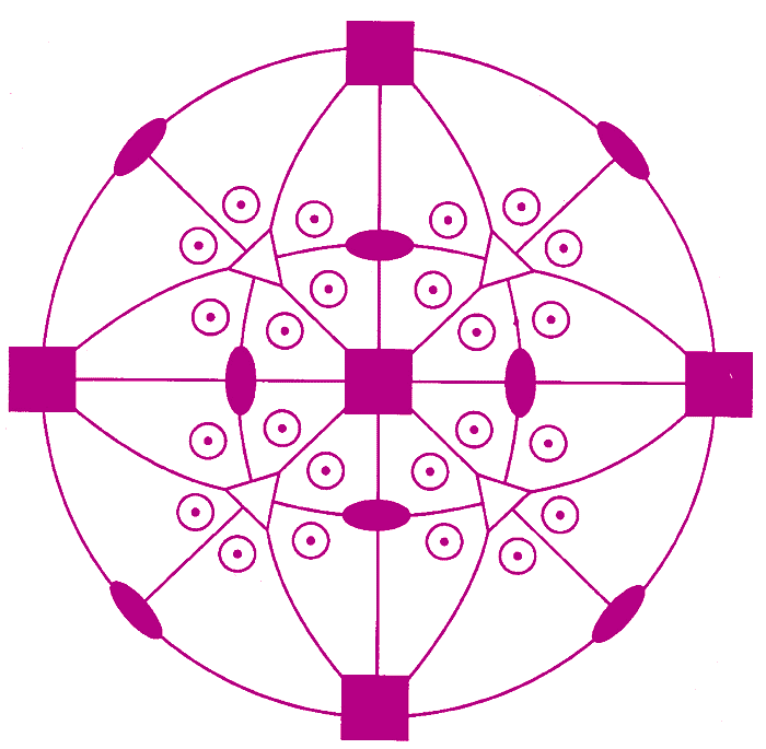 estructuras poliédricas geodésicas específicas para cada uno de los siete