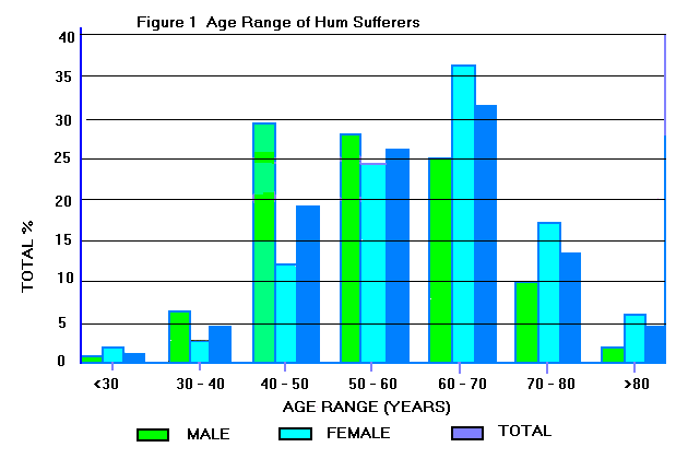 The chart left shows the age distribution of HUM sufferers complied by the Building Research Establishment