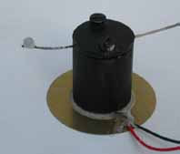 The spring is mounted on a steel block 2cm diameter and 2.5 cm in height.