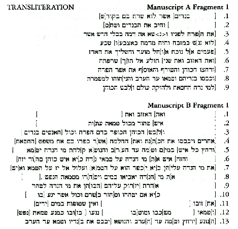 Columns representing the first column of this document have now been found in the unpublished materials from Qumran; they are not, however, the first column of the Qumran document, i.e. there is indecipherable material belonging to an additional column or columns to the right of the material paralleling the Cairo version on the unpublished plates. A good deal of the other Damascus Document materials found among the unpublished fragments from Qumran do parallel the Cairo recensions; therefore we have not included them.