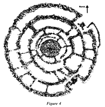 semicírculo de piedras más pequeñas, y está rodeado a su vez por dos