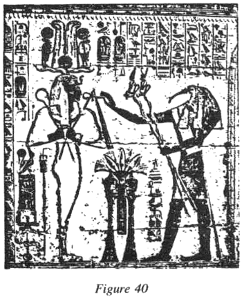 Abydos, una pintura mural (Fig. 40), en la cual el faraón Seti I