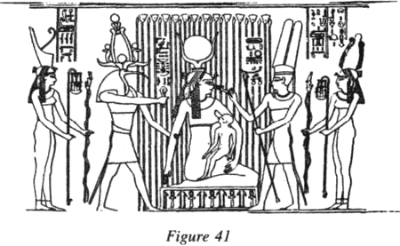 trata del posterior nacimiento de Horus, vemos (Fig. 41) cómo las