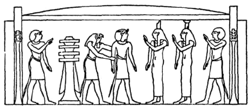 Thou findest Ra standing there. He greets thee, lays hold on thy arm. He leads thee into the celestial Double Palace. He places thee upon the throne of Osiris.