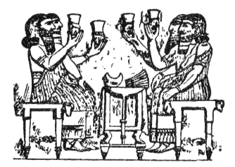 As related in chapter 5 of the Book of Daniel, Belshazzar made a great banquet for a thousand of his nobles and was feasting and drinking wine - a scene known from several Babylonian and Assyrian depictions of royal banquets (Fig. 62).