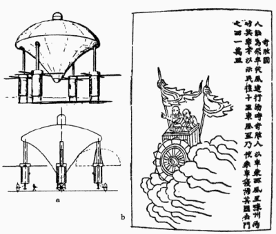 (In recent years the technical interpretation by Joseph Blumrich, an ex-NASA engineer, in The Spaceships of Ezekiel (Fig. 66a) has received favorable attention. An early Chinese depiction of a Flying Chariot (Fig. 66b), attests to the widespread awareness of the phenomenon in antiquity in all parts of the world).