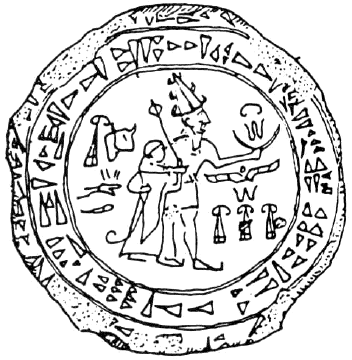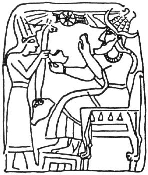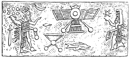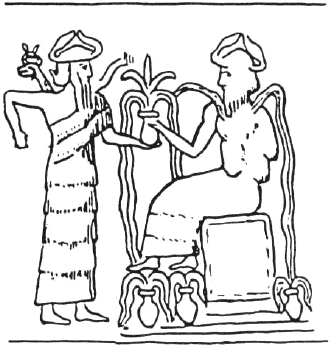 El grabado de un sello cilíndrico sumerio (Fig. 21) puede ilustrar