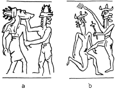 Se han encontrado antiguas representaciones acerca de este hecho (Fig. 23 a), así como del hábito de los anunnaki en la lucha (Fig. 23 b) de herir al otro en los genitales.