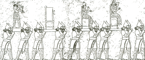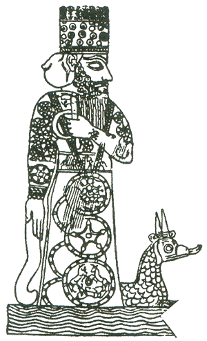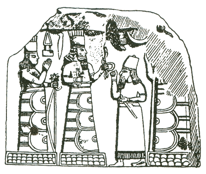 por Adad (que sostiene el anillo y el rayo) y por Ishtar, que sujeta