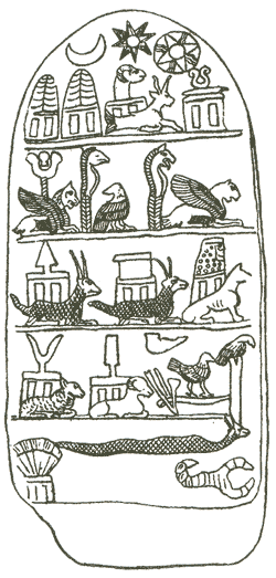 En un mojón de piedra, tallado por un rey de Susa con los símbolos