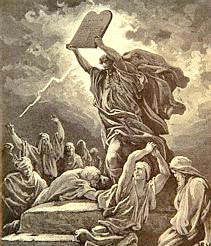 An angered Moses about to break the first set of Tablets with the Ten Commandments