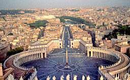 Views from St.Peter’s Basilica; Rome, Italy. On left photo, Tiber River shows, and "Conziliazione Avenue."