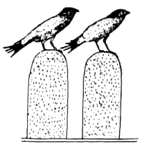 two birds atop or at the sides (Fig. 102) of the conical object.