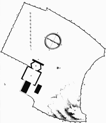Arranged along a slightly slanted east-west axis (Fig. 91b) were,