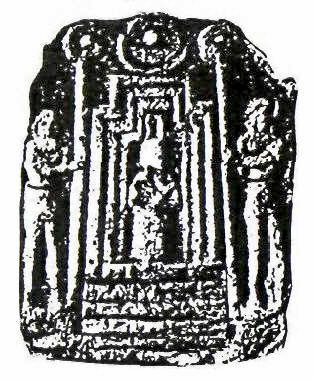 Depictions have been found that show divine beings flanking a temple entrance and holding up poles to which ring-like objects are attached. The celestial nature of the scene is indicated by the inclusion of the symbols of the Sun and the Moon (Fig. 56).