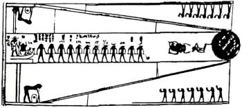 An Egyptian depiction of a similar motif, a scene painted on the Papyrus of Queen Nejmet, shows how two cordholders measured an angle based on the planet called "Red Eye of Horus" (Fig. 70). Figure 70