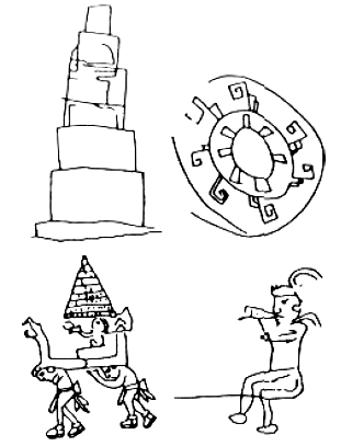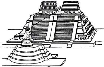 The Game of Fifty-two was Thoth's game, and the Tale of Satni earlier related clearly stated that "fifty-two was the magical number of Thoth." We have already explained the significance, in terms of Thoth's feud with Ra/Marduk, of the Egyptian calendar of fifty-two weeks. The Mesoamerican "fifty-two" had "Thoth" stamped all over it. Another hallmark of Thoth was the application of a circular design to edifices related to the calendrical observations of the heavens. The Mesopotamian ziggurats were squarish, with their corners aligned to the cardinal points.