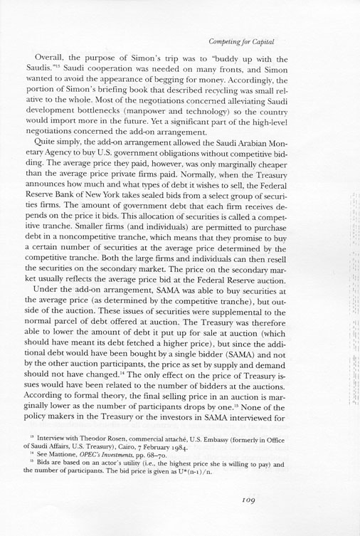 "The Hidden Hand of American Hegemony-Petrodollar Recycling and International Markets" by David E. Spiro.  Here it is shown that SAMA were able to buy US Treasuries "without competitive bidding."