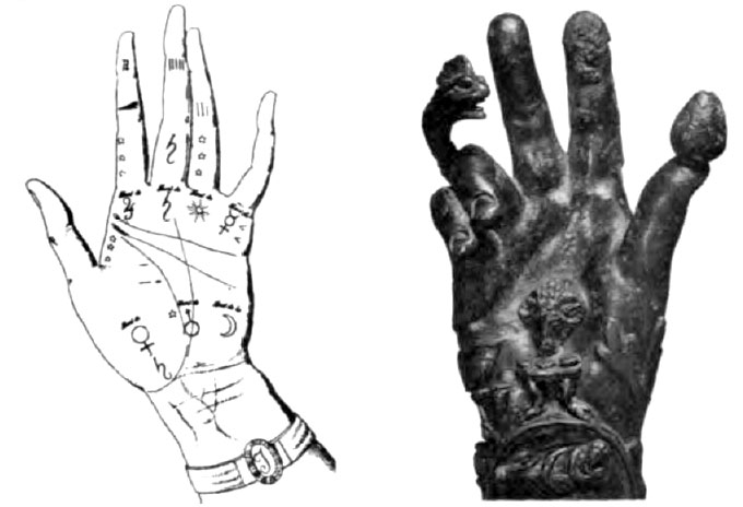 At Right: The Sabazios Hand. Bronze symbol of the syncretic Jewish mystery cult of Sabazios in Asia Minor. Circa First Century, C.E. (Collection of the British Museum)