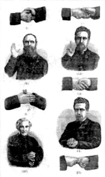 Many secret orders and societies display and use secret handshakes and signs. In Wales (Great Britain) the Order of the True Ivorites was established in 1836 and prospered for many years. Some believe two lodges of Ivorites still exist today. Pictured here are some of their secret signs and handshakes.
