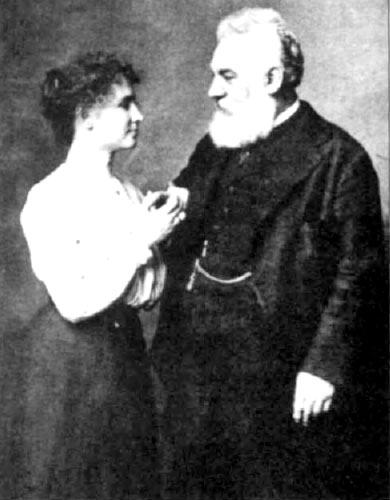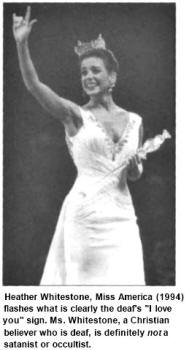But Helen Keller also got involved in occultic sects like Swedenborgianism and Theosophy. Did her membership in these groups inspire Keller to choose a hand sign for the deaf, translated as "I love you", which is today often used interchangeably with the universal "I love (and/or worship) Satan" hand sign? Helen Keller with Alexander Graham Bell. Keller wrote a book, My Religion, in which she explained her occult religious views and her enthusiasm for the teachings of mystic Emmanuel Swedenborg.