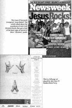 Christian Rock?—Is there such a thing as Christian rock'n'roll? This book , authored by a mother of a young man who was a member of a rock band, was intended to defend Christian rock music. But perhaps tellingly, the cover seems to show one person giving the horned devil sign and a couple more displaying the F...k You! sign (finger in middle of hand upraised)—all at a Christian rock concert!