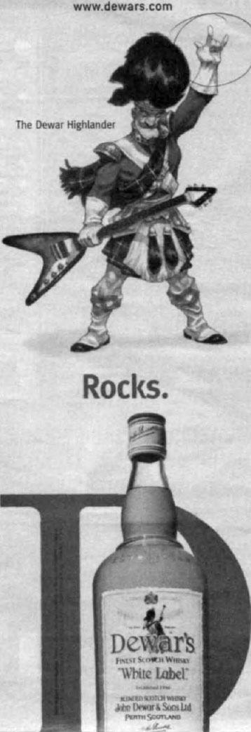 "This was beyond bad taste," said Rick Neiswanger, who attended the exhibition but had no idea that Penn & Teller would pull such a blasphemous stunt. In the Globe tabloid (February 7, 2005), actor Chad Michael Murry (movie—A Cinderella Story), lets readers know what kind of star he is. This scotch whiskey ad in Rolling Stone magazine shows a bizarre image of a Scottish highlander rock'n'roller giving a satanic sign. The circle was placed there by the person who clipped and sent this ad to me. Rock band Metallica