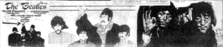 Full page ad in USA Today, July 22, 2003 p. 5D The Beatles singing group shown at left in a cartoon drawing from their Yellow Submarine album. John Lennon flashed the "El Diablo" sign. At right, Paul McCartney gives the "OK," or "666," sign while Lennon again displays the horned devil signal with his left hand.